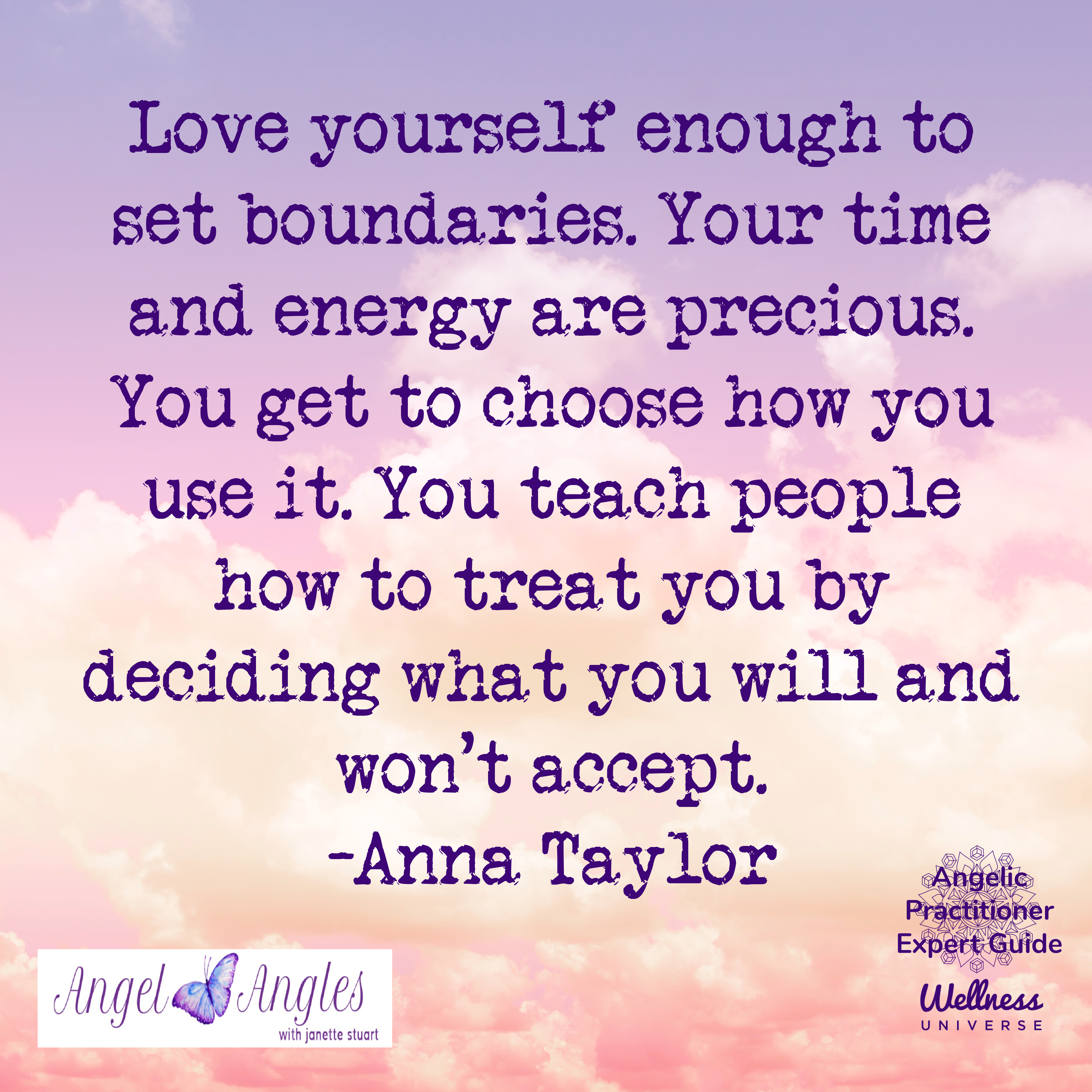 Love yourself enough to set boundaries. Your time and energy are precious. You get to choose how you use it. You teach people how to treat you by deciding what you will and won’t accept.